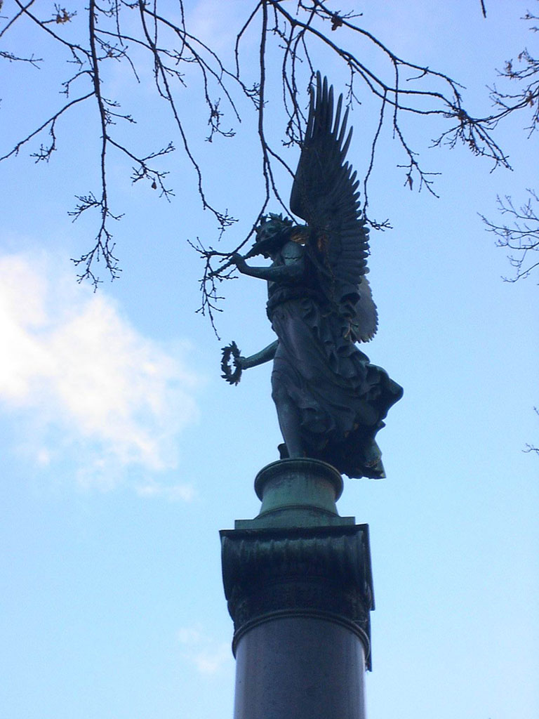 Колонны Славы на Конногвардейском бульваре в Санкт-Петербурге очень знамениты, на них расположены бронзовые фигуры женщин победы Ники. Архитектурные экспозиции скульптуры, в руках которой лавровые венки изготовлены по специальному проекту знаменитого скульптора Рауха Х.Д. в Берлине. Статуи
