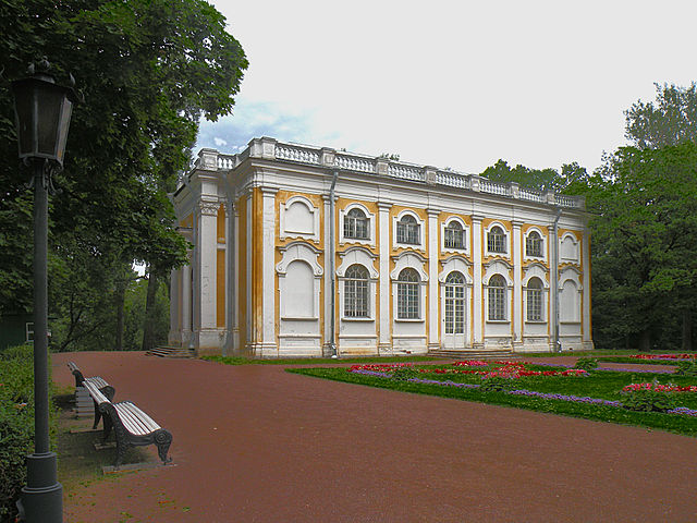 Это садовый павильон, обязательный атрибут регулярных парков XVIII века, был построен в 1762 году по проекту архитектора Ф. Б. Растрелли. Строительство началось 1755-1756 годах по приказу