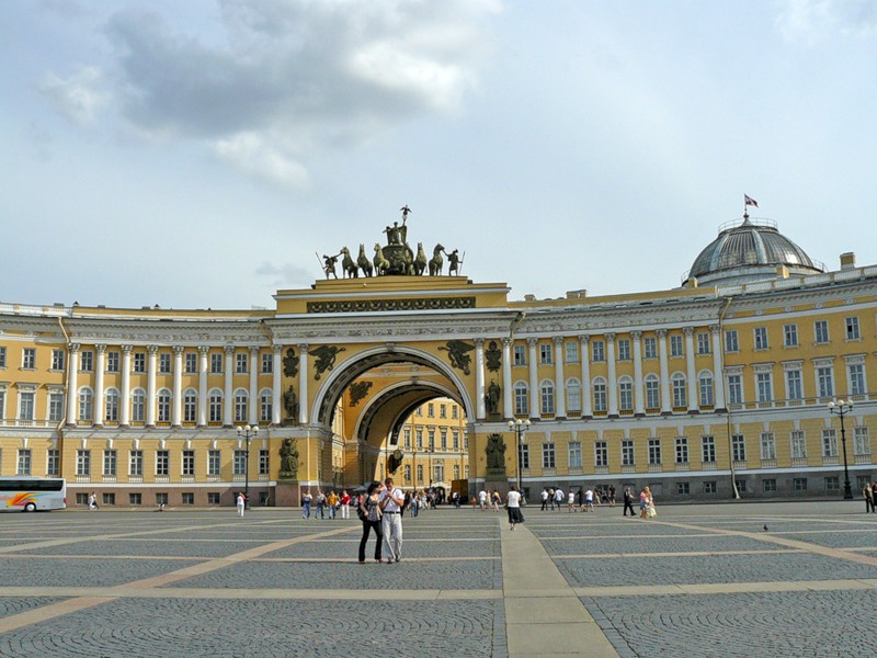 Дворцовая площадь, несомненно, приходится главной площадью Санкт-Петербурга. Этот архитектурный ансамбль начал возводиться во второй половине XVIII, а завершились работы в середине XIX века. В основу идеи создания легла гордость за русскую армию в войне 1812 года. Дворцовый ансамбль включает в себя